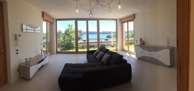 Gavirate, in zona residenziale e a poca distanza dal centro di Gavirate, proponiamo in locazione elegante appartamento con magnifica vista lago, completamente arredato sito al piano terra composto da: soggiorno, cucina, 2 camere, 2 bagni, ripostiglio, terrazzo e giardinetto uso esclusivo, box doppio e piscina condominiale.