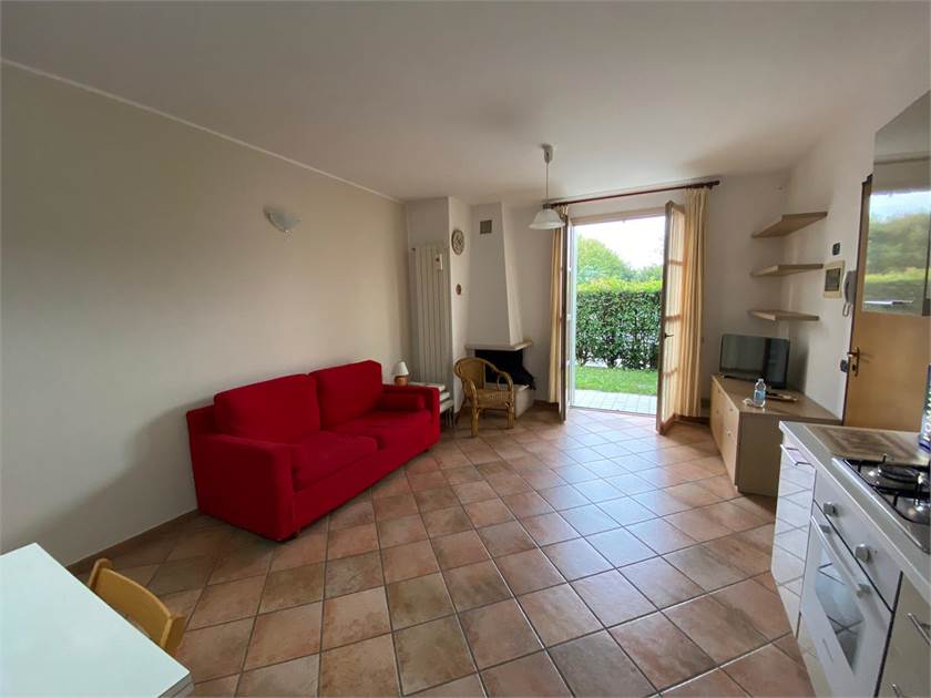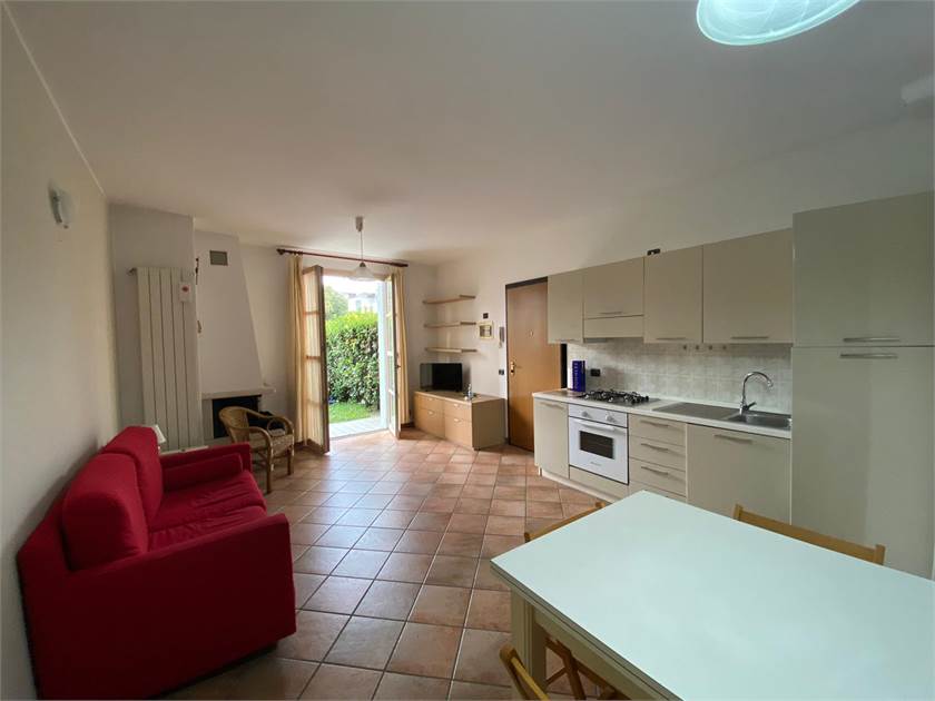 In zona comoda a tutti i servizi in palazzina di recente costruzione proponiamo in locazione spazioso bilocale posto al piano terra con giardino privato. L'appartamento composto da soggiorno con camino, cucina a vista, camera da letto matrimoniale, disimpegno, bagno si presenta in ottimo stato.