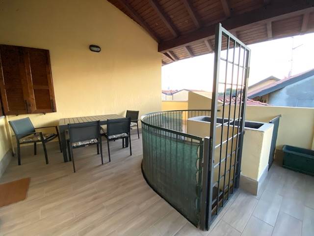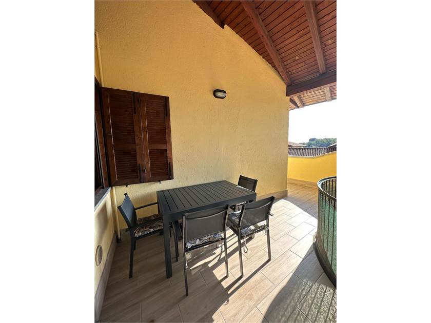 L'immobile è composto da soggiorno, cucina abitabile, disimpegno, camera matrimoniale, balcone e terrazzo coperto.