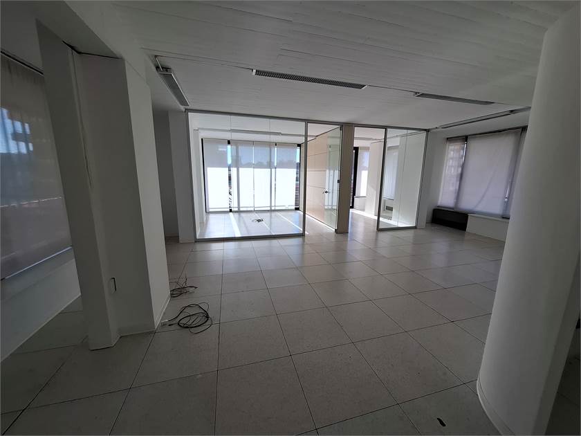 Posizionato nel Corso Matteotti, in piccola palazzina fornita di ascensore, proponiamo in locazione uso ufficio locale di circa 115 mq, circondato da ampio balcone, l'immobile è costituito da ampie vetrate, e diviso al momento da serramenti con vetrate, in due ampi uffici, oltre ingresso e due bagni.