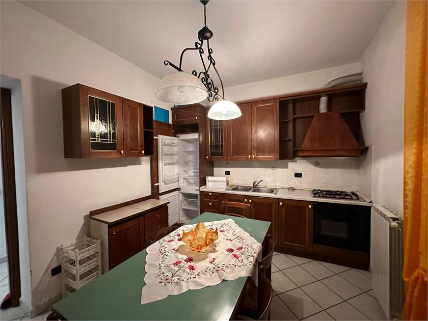 L' appartamento è composto da soggiorno, cucina separata, disimpegno, bagno con doccia e lavatrice e camera matrimoniale.
