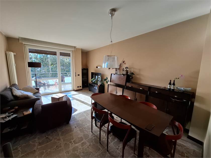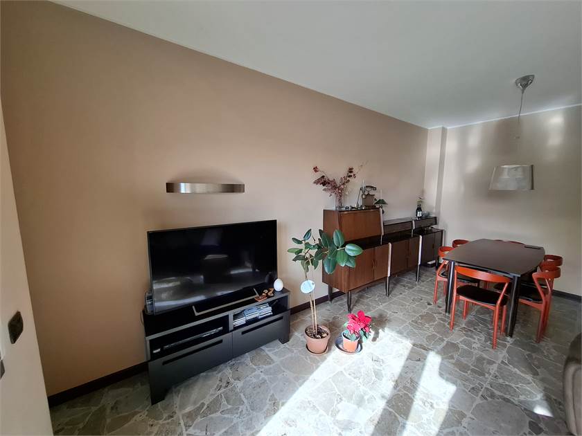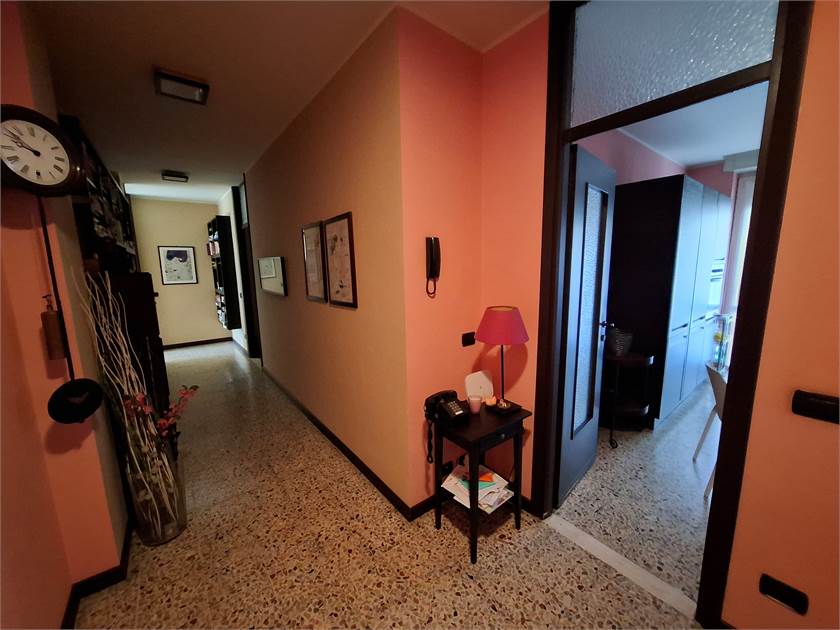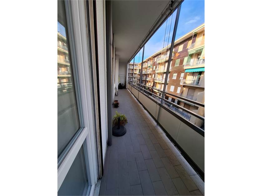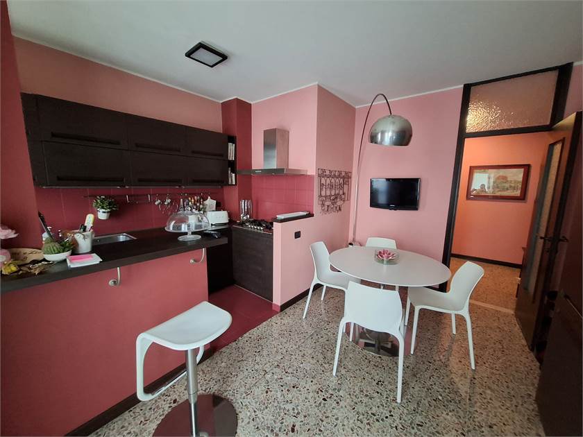 Ingresso su corridoio, cucina abitabile, con porte finestre che danno sul terrazzo, ampio soggiorno, con altro terrazzo, ideale per pranzi e cene all'aperto, esposto a Sud, oltre a due ampie camere, di cui una con cabina armadio, e bagno con doccia e sanitari recenti.