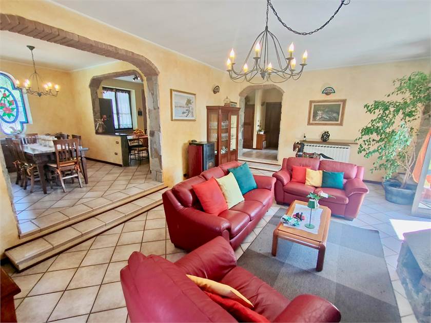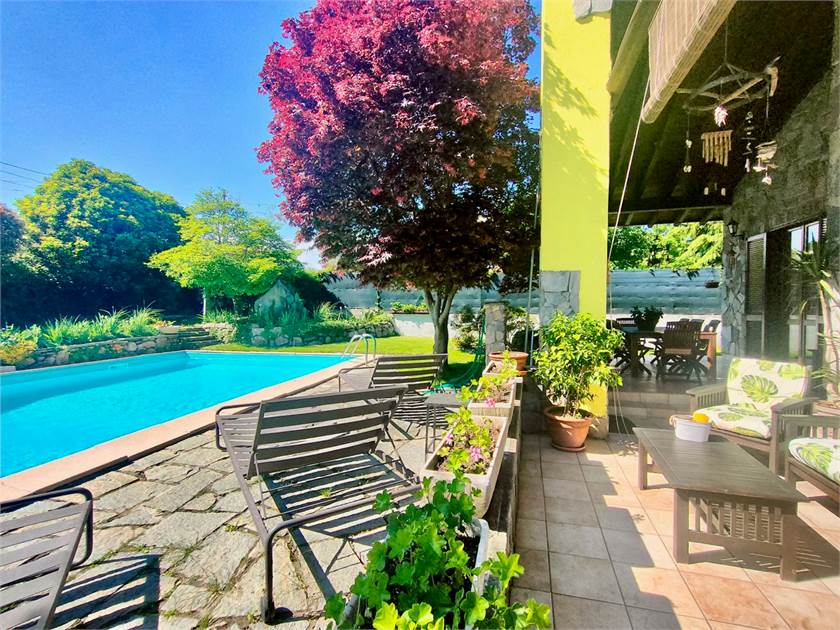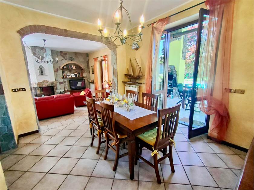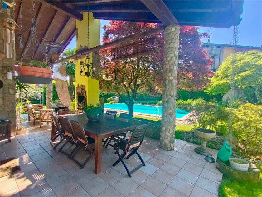 Bregano, a solo 5 minuti da Besozzo, in posizione dominante, con assoluta privacy e ottima esposizione, proponiamo ampia villa singola realizzata nel 1996. L'immobile è caratterizzato da ampi spazi e da finiture importanti quali il Luserna che è presente nella maggior parte delle pareti sia interne che esterne, mattoncini antichi e sassi da fiume. La villa è disposta su unico livello, formato da ingresso, ampio salone con camino a legna ad areazione forzata, zona pranzo che accede al portico di 60 mq con BBQ e vista piscina, cucina abitabile e bagno di servizio con doccia. Nello stesso piano tramite disimpegno si accede alla zona notte formata da due camere matrimoniali, una camera singola e un bagno di 35 mq con vasca.