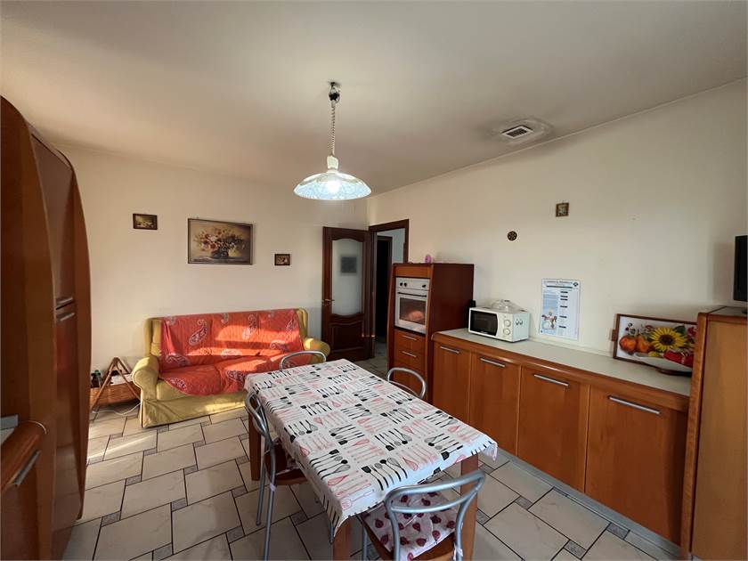 -ingresso con ampio soggiorno, una cucina abitabile con esternamente un balcone e un portico spazioso perfetto per pranzi o cene estivi in compagnia, con una vista aperta non da poco.