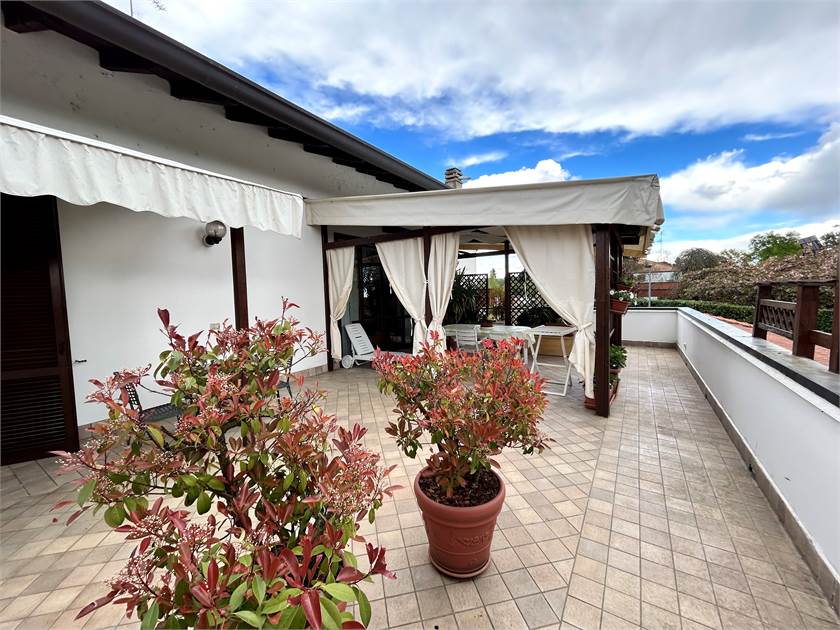 b) piano primo adibito ad appartamento di 167,06 mq composto da ampio soggiorno, cucina abitabile, 2 camere di cui una con locale guardaroba, 1 locale spogliatoio, 3 bagni, grande terrazzo di 75 mq.