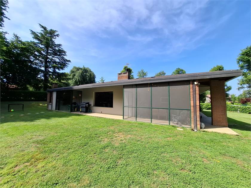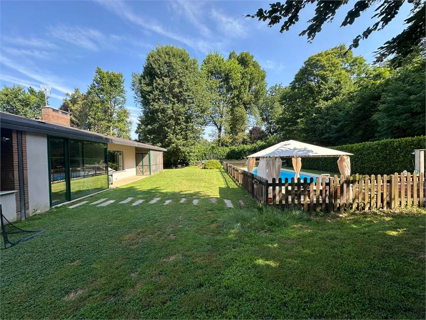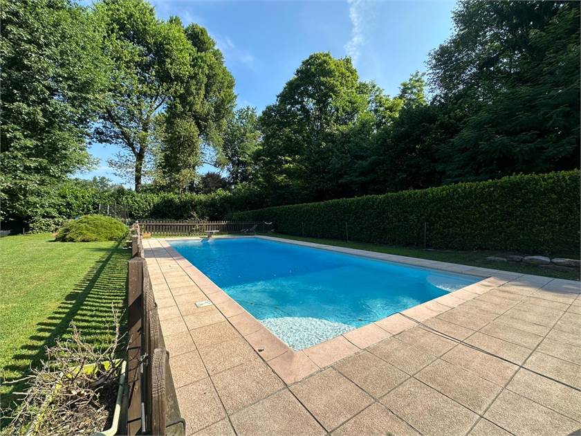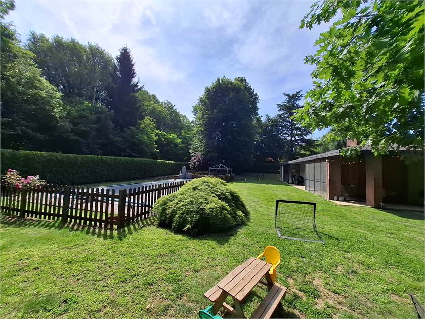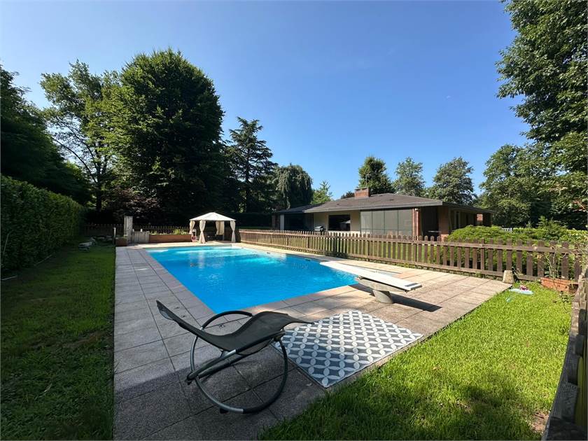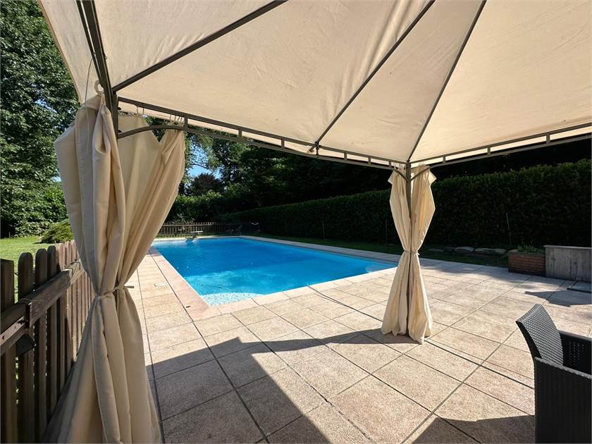 Esternamente, la villa è circondata da un parco privato di circa 3000 mq, un'estensione verde perfetta per passeggiate rilassanti o per godere della natura. La splendida piscina ti aspetta per rinfrescanti bagni estivi e momenti di puro divertimento.