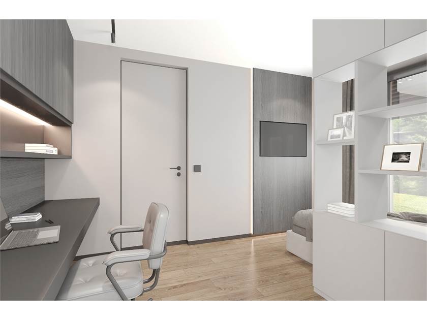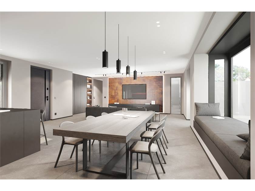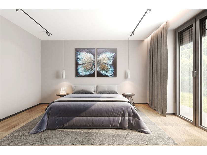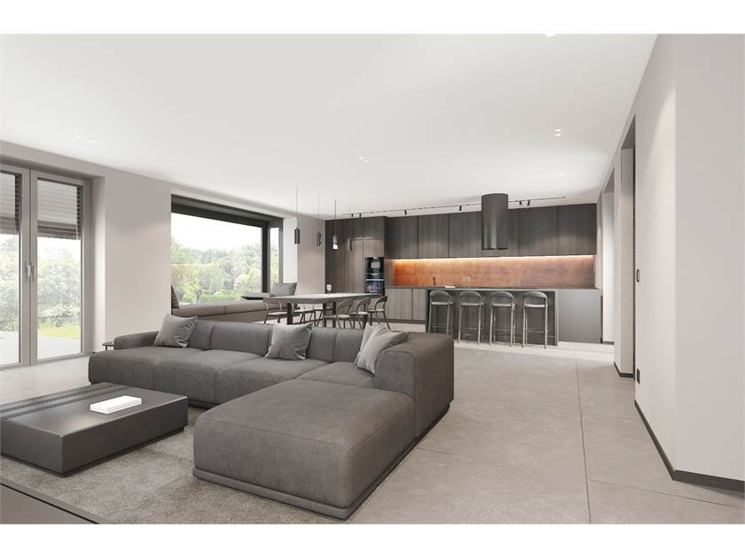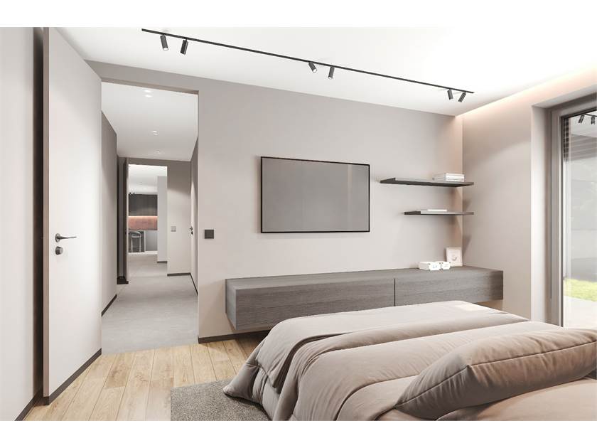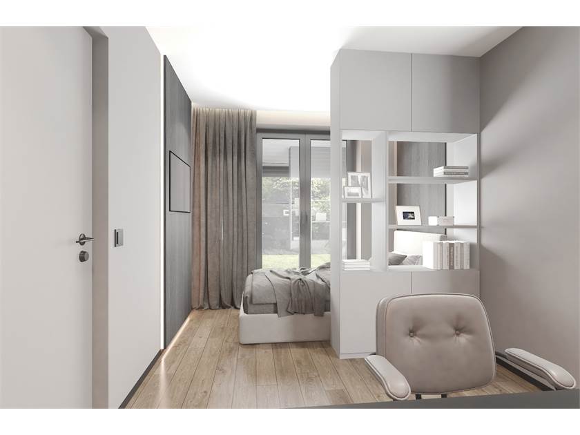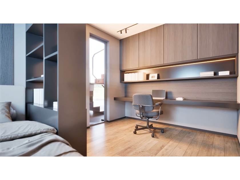 L'unità immobiliare viene realizzata con tecnologie finalizzate al risparmio energetico, capitolato di pregio e finiture moderne. Ed è composta da ingresso su ampio e luminoso soggiorno con cucina a vista, disimpegno, due camere matrimoniali, camera singola e doppi servizi.
