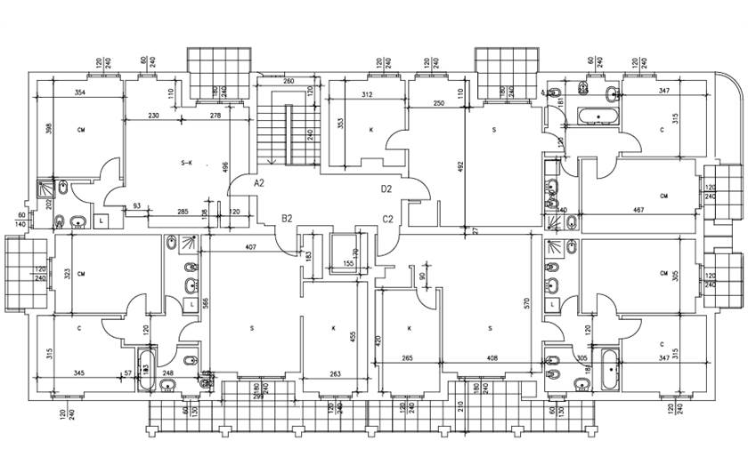 Gli appartamenti al primo e secondo piano sono così composti da ingresso con ampio soggiorno, cucina abitabile, due bagni comodi e due camere da letto e balcone.