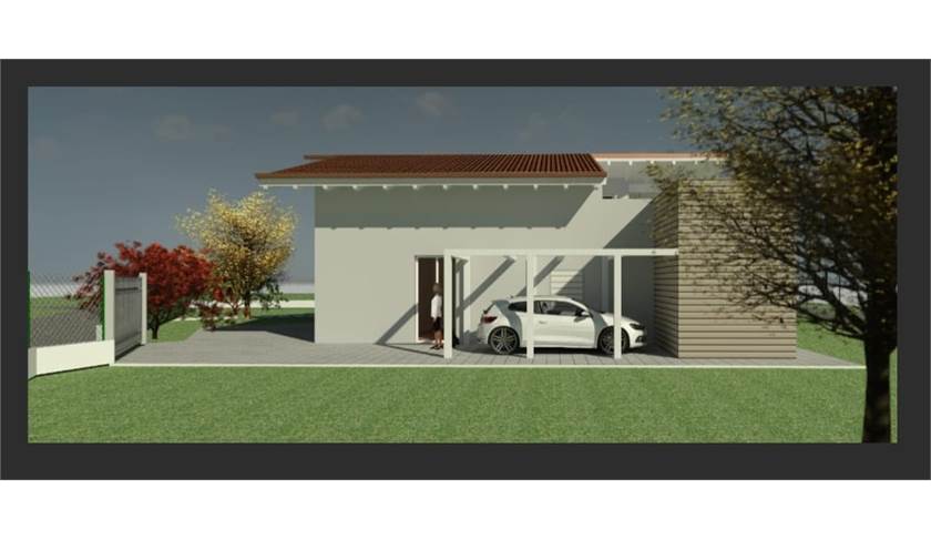L'abitazione è composta da ingresso su soggiorno con cucina abitabile, porticato, disimpegno, due camere, due bagni, lavanderia e locale tecnico.