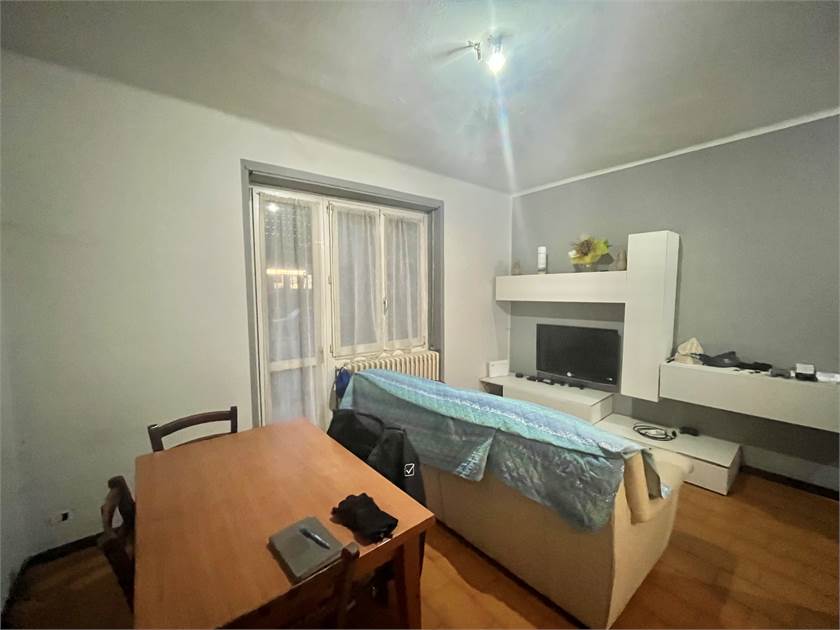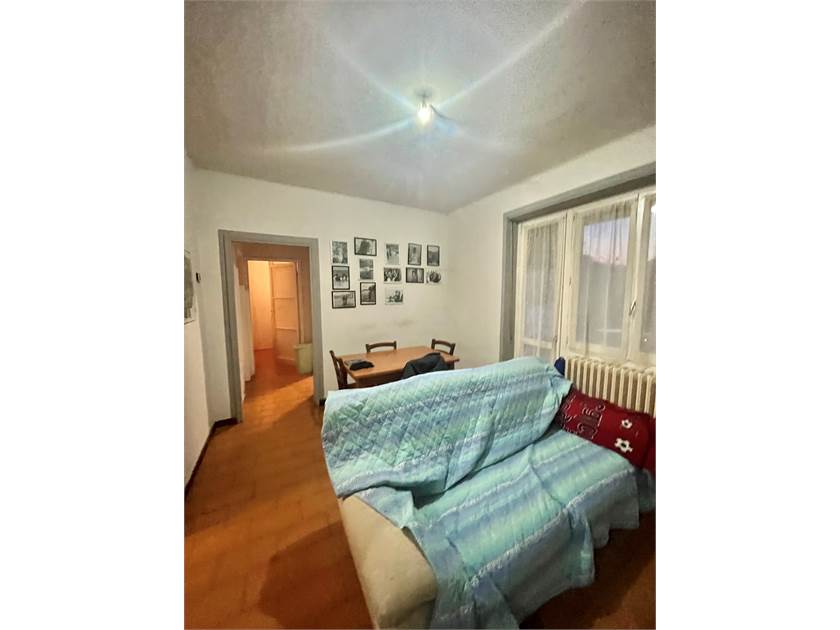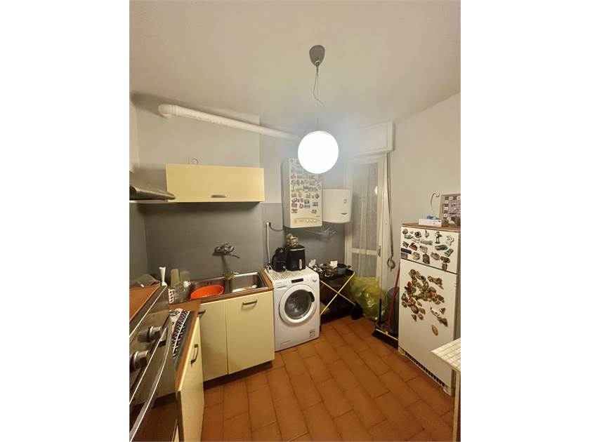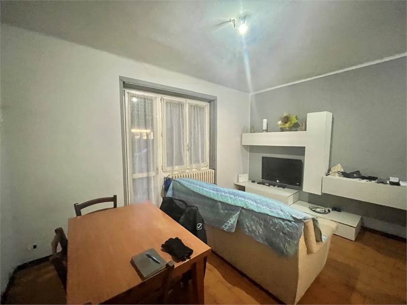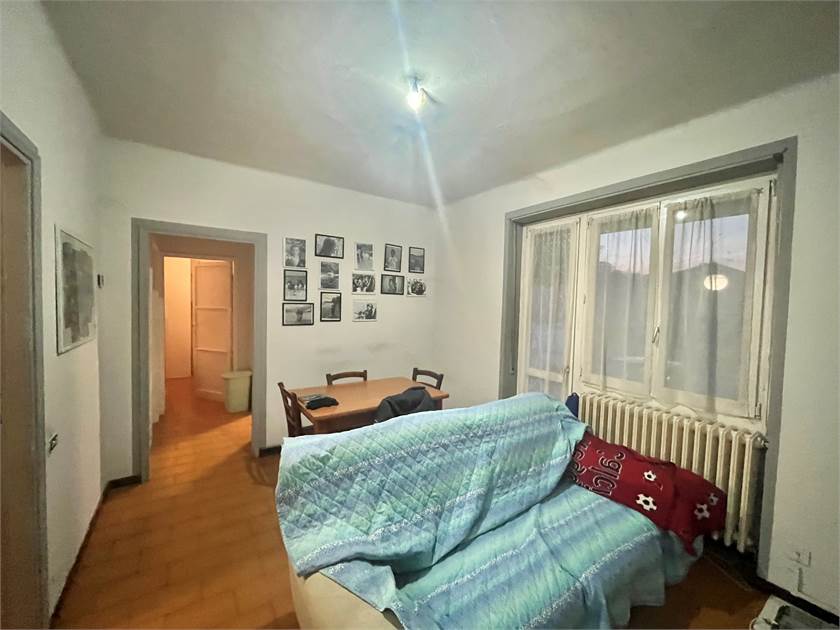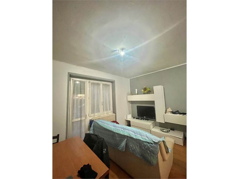 -Ingresso con soggiorno ,balcone e cucina abitabile, troviamo poi un disimpegno che porta al bagno di servizio, ad una camera matrimoniale (attualmente usata come ripostiglio) e un'altra camera da letto.