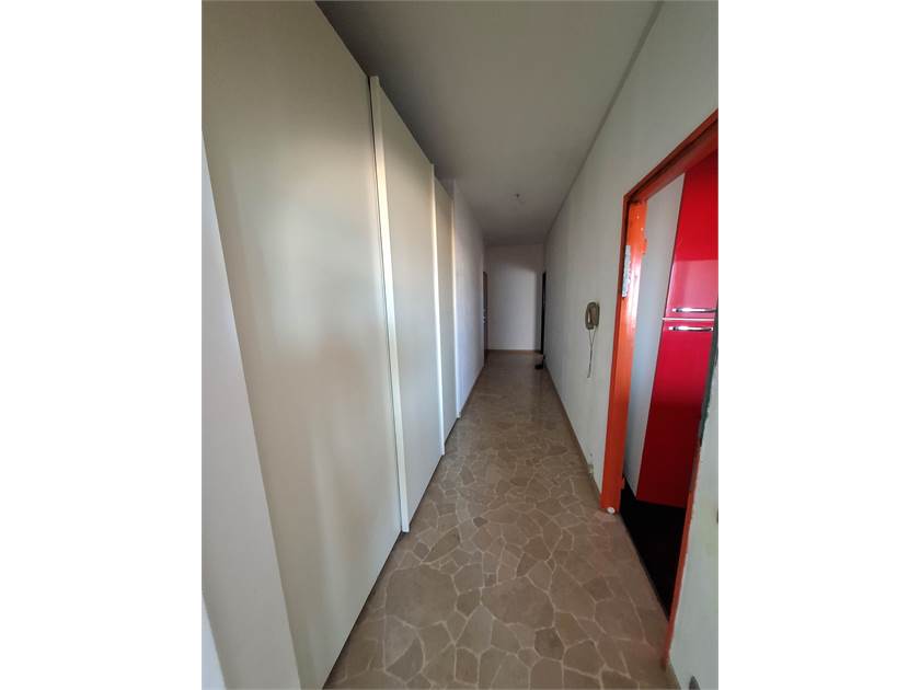 Ingresso su corridoio, dal quale si accede alla zona notte, dove troviamo due camere con balconcino, e un bagno, sempre dal corridoio si accede alla cucina semi abitabile, e il soggiorno con balconi.