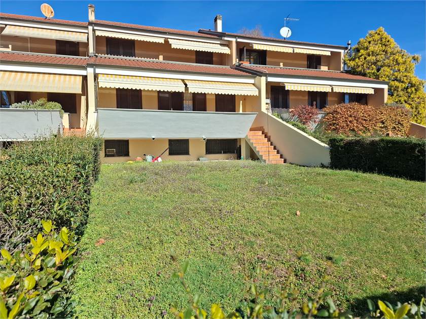 Posizionata nel bellissimo residence con ampio parco, in Via Alla Cartiera, proponiamo in vendita villetta a schiera, con bellissima esposizione, composta da: ingresso su disimpegno, cucina, soggiorno, cameretta e bagno al piano terra, con uscita sul balcone e accesso al giardino privato, e a sua volta al parco condominiale con vista sul torrente Erno. Al piano primo troviamo due camere, bagno e balcone.