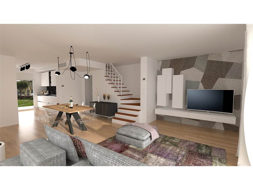 Le foto degli interni sono dei render di come potrà essere rifinita la villetta.