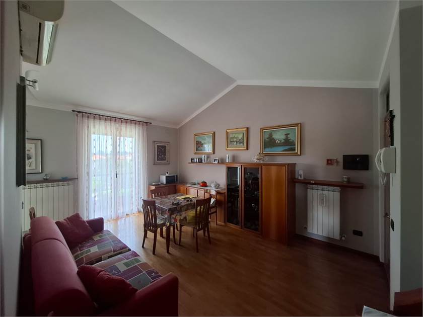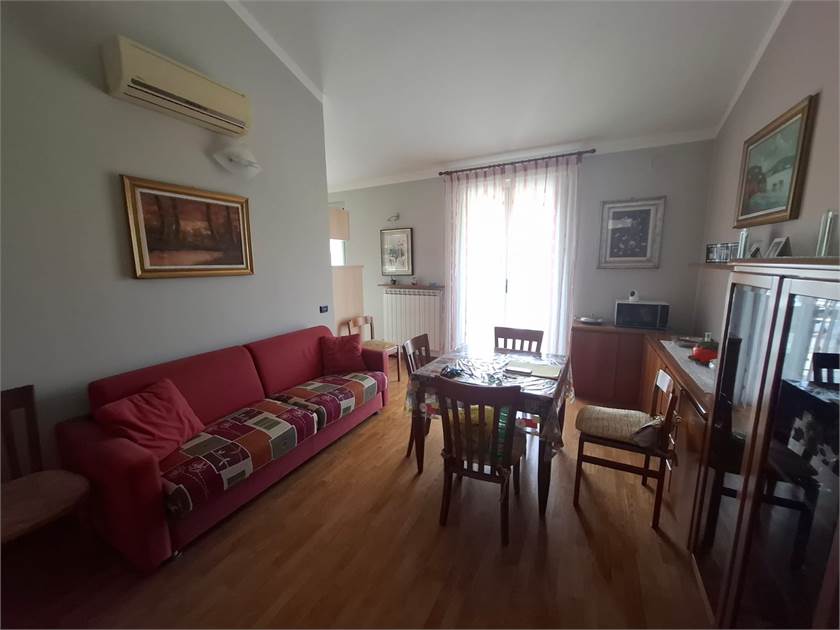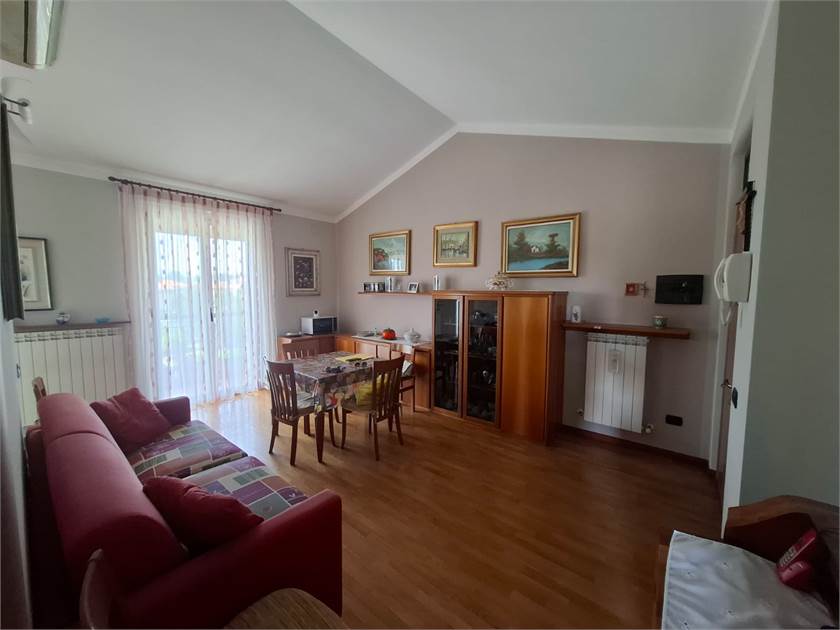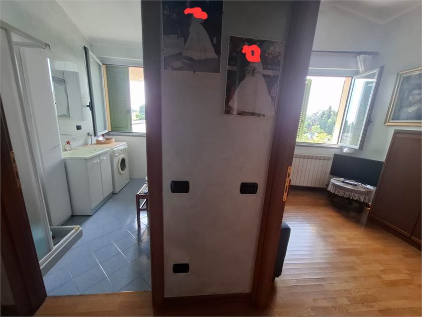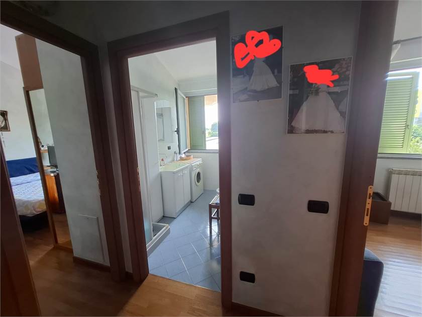 L'appartamento è cosi composto: ingresso su soggiorno, cucinotto, disimpegno, cameretta, primo bagno, camera matrimoniale con secondo bagno e balcone.