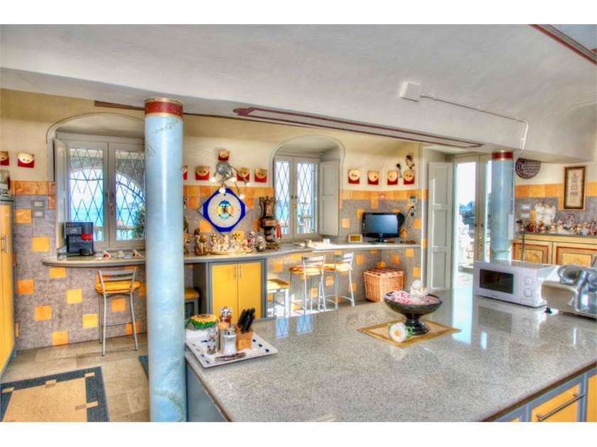 Dalla scala, le ampie finestre offrono un quadro suggestivo del panorama lacustre.Il piano terra, originariamente adibito al personale di servizio, oggi ospita un’ampia cucina industriale, raffinato prodotto d’avanguardia del design italiano.