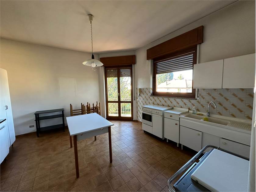 La casa è composta da un ampio appartamento al primo piano di circa 150 mq. raggiungibile sia da una scala interna che esterna e si accede ad un ingresso con disimpegno, cucina abitabile, ampio soggiorno, tre camere e due bagni.